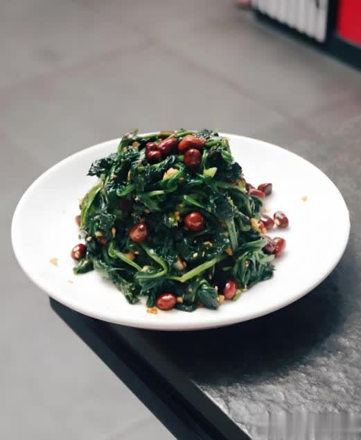 食材准备:菠菜 300克;花生米 50克(生的花生米);大蒜 2瓣;香醋 适量;生抽 适量;盐 适量;糖 适量;香油 少许
