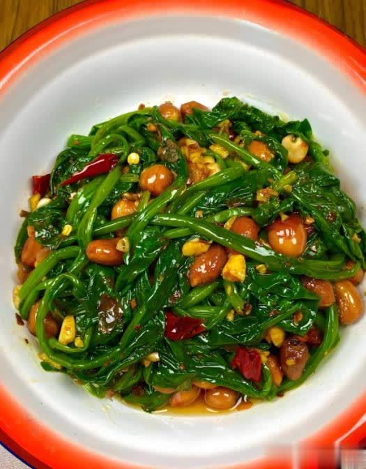 7. 加入花生米:最后将炒好的花生米加入,搅拌均匀。花生米不需要过多搅拌,保持一定的颗粒感,增加口感。