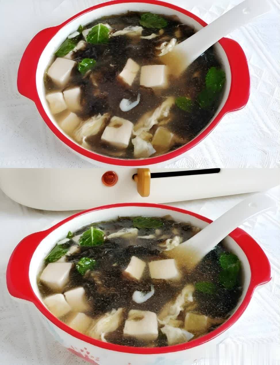 (2) 豆腐选择:选用嫩豆腐做汤品更加细腻。如果是老豆腐,切块时要小心,避免碎裂。