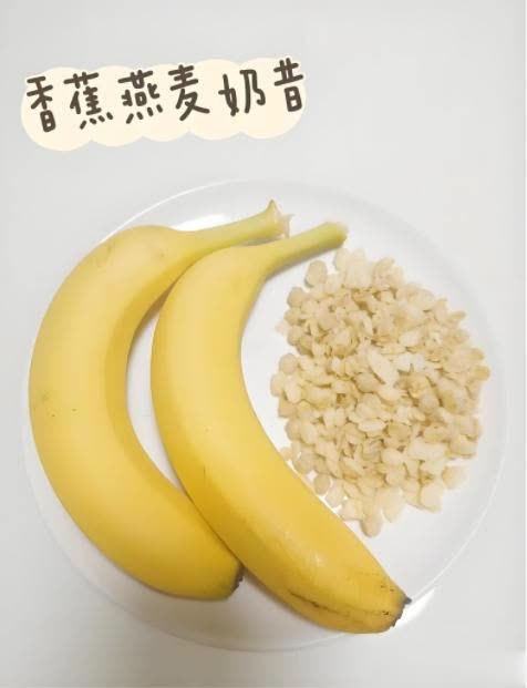 1. 准备食材:将香蕉去皮,切成小段,备用。燕麦片放入一个小碗中,准备好牛奶或植物奶。